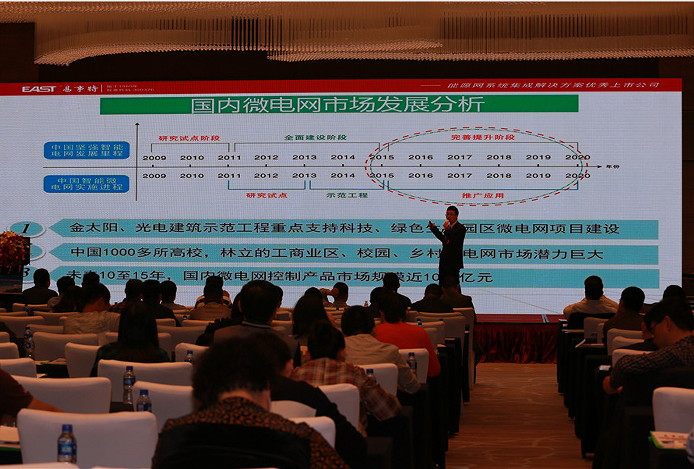 易事特研发中心张涛博士向与会嘉宾介绍易事特智能微电网示范工程的应用成果: