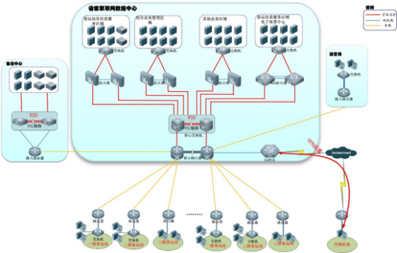 第二,高可靠:客运联网售票系统是社会保障业务处理的核心系统,如果遇到破坏,或无法正常工作,将造成无法估量的损失。因此网络架构需采用冗余设计,保证数据链路的稳定性;同时保证服务器数据流的合理分配、压力分担,确保服务器连续稳定工作。