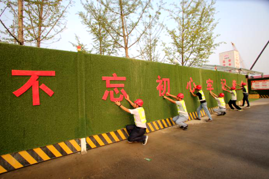 (记者 常魁星 通讯员 伍振)中铁十八局集团一公司郑州机场至许昌市域铁路工程(郑州段)08标项目部施工人员给工地围挡“穿”上崭新漂亮的“绿裙子”,并挂上正能量标语,工程牌配上“民族风”,成为郑州新郑市黄海路一道引人注目的风景线。该项目部项目经理王建达介绍,这种新型绿色围挡是一种仿真草皮,具有降噪、减震、吸尘、安全无毒、绿色环保、美观大方等特点,清洗方便,且具有很高的安全性能,目前该新型绿色围挡效果已得到郑州轨道公司的广泛认可和肯定。