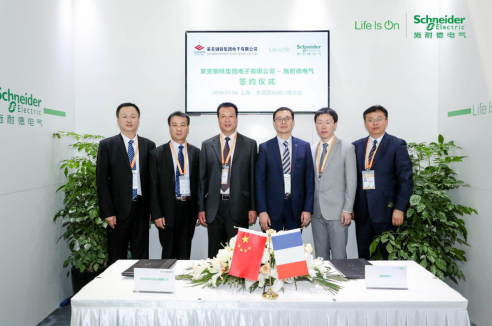 中国上海,2018年11月6日——近日,在首届中国国际进口博览会现场,全球能效管理与自动化领域数字化转型的领导者施耐德电气,与莱芜钢铁集团电子有限公司(以下简称“莱钢电子”)正式签署战略合作协议,双方将围绕钢铁行业的智能化升级改造业务展开合作。施耐德电气高级副总裁、工业事业部中国区负责人庞邢健,与莱钢电子负责人代表双方签约。