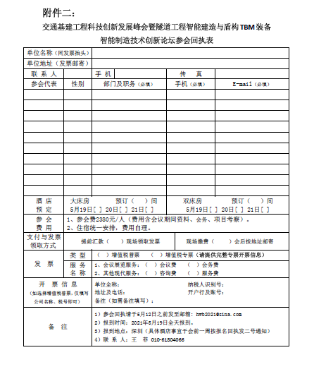 为学习领会《国家综合立体交通网规划纲要》的精神,贯彻落实住建部、发展改革委、 科技部等部门联合颁发的《关于推动智能建造与建筑工业化协同发展的指导意见》和《关于加快新型建筑工业化发展的若干意见》等文件精神,进一步提高隧道工业化、数字化、智能化水平,促进隧道产业建筑信息模型、互联网、物联网、人工智能等信息技术的集成与创新应用,提升隧道施工技术、装备技术、工艺工法、安全质量等方面的科技创新能力,交流探讨隧道工程智慧建造前沿技术应用、项目实践及最新成果,加快产业的转型升级、提质增效和高质量发展,打造“中国智造”品牌,中国技术市场协会定于2021年5月19-21日在深圳举办“交通基建工程科技创新发展峰会暨隧道工程智能建造与盾构TBM装备智能制造技术创新论坛”。